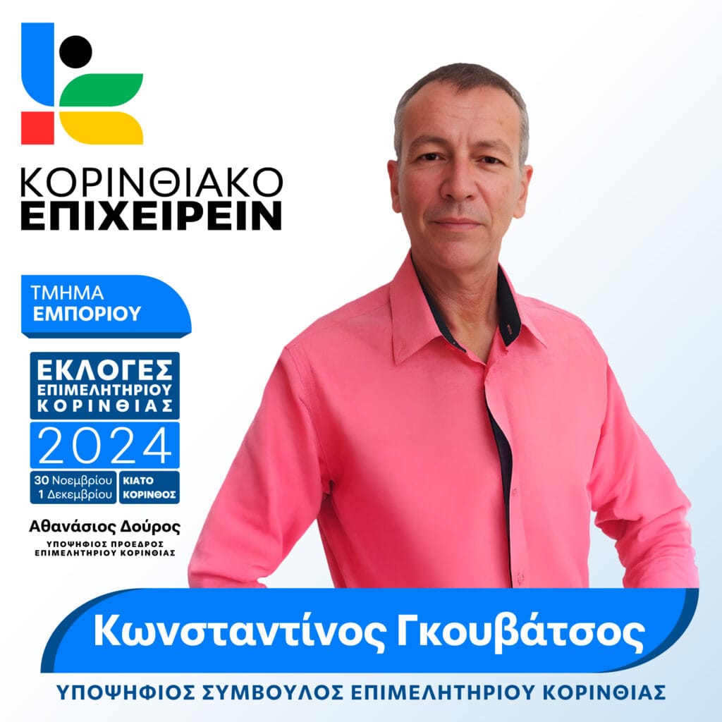 Με τη συμμετοχή του στις επιμελητηριακές εκλογές μέσω του Κορινθιακού Επιχειρείν, ο Κωνσταντίνος Γκουβάτσος φέρνει μαζί του την πολύτιμη εμπειρία του στον κατασκευαστικό κλάδο και την επιχειρηματική του διορατικότητα. Πιστεύει ότι η ανάπτυξη των μικρομεσαίων επιχειρήσεων είναι ζωτικής σημασίας για την ευημερία της τοπικής κοινωνίας.