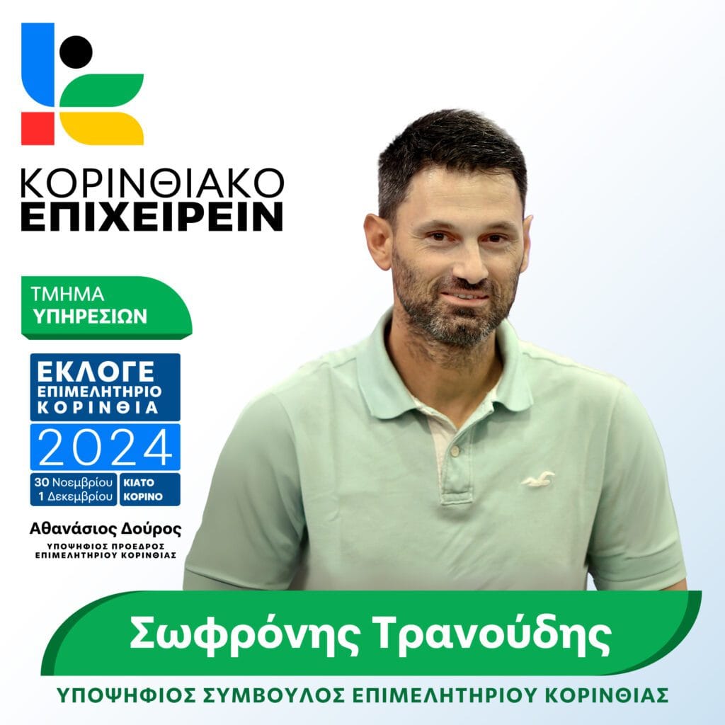 Η επιλογή του να είναι υποψήφιος στις επικείμενες εκλογές του Επιμελητηρίου νομού Κορινθίας με τον Αθανάσιο Δούρο, είναι η ανανέωση και η ανάπτυξη των επιχειρήσεων.